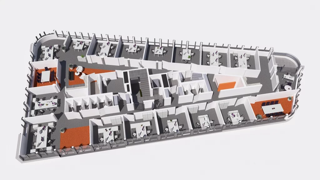 Ob Einzelbüros, Teamflächen oder Besprechungsbereiche – die Flächen lassen sich an individuelle Anforderungen anpassen.