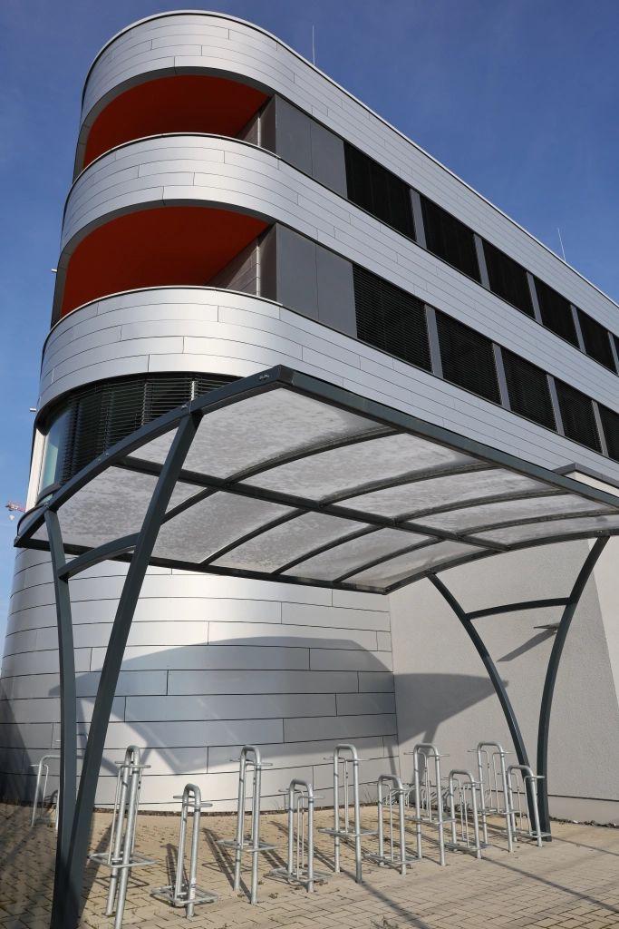 Egal wie man anreist, das Gebäude heißt jeden entsprechend willkommen. Je nach Mieteinheit sogar mit einer Dusche nach einer flotten Fahrt mit dem Rad. Derweil steht das Rad sicher auf den Fahrradstellplätzen hinter verschlossener Tür. Ebenso sind alle 15 Stellplätze im Gebäude mit Ladesäulen ausgestattet, für eine entspannte Weiterfahrt. Im direkt benachbarten Parkhaus befinden sich weitere Stellplätze.